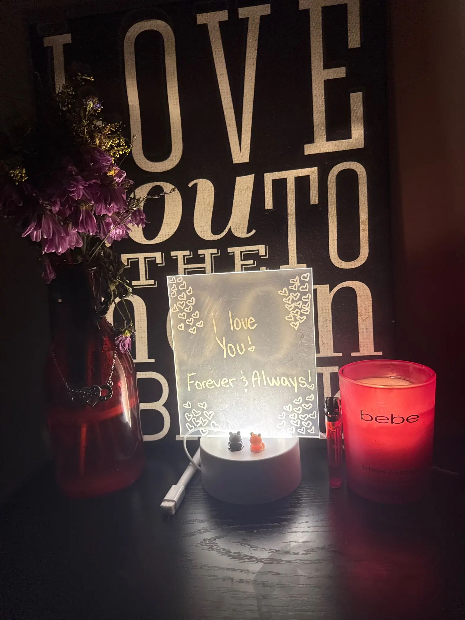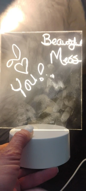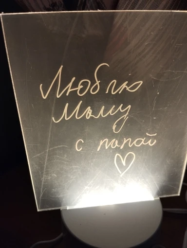 GrĂące Ă son panneau acrylique transparent et sa base LED, chaque mot brille comme une enseigne lumineuse â Ă©lĂ©gant, doux et hypnotisant.